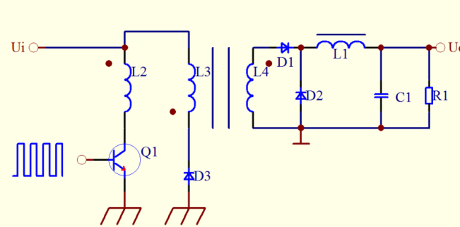 這種電路,輸出功率較大(不管Q1導(dǎo)通與截止,都有能量傳遞到負(fù)載上)―但是存在問題是:變壓器結(jié)構(gòu)雜亂,體積較大,所以其實踐使用很少。