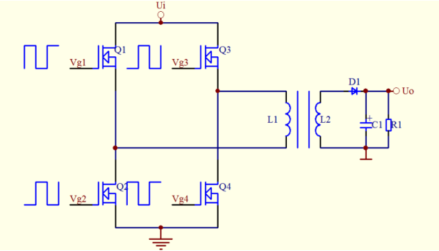 推挽式:電路選用推拉結(jié)構(gòu),每個開關(guān)管只作業(yè)半個周期,管子替換作業(yè),所以輸出功率較大,一起Q1和 Q2是共地的,驅(qū)動控制電路也很簡單,能夠選用經(jīng)典的SG3525驅(qū)動。值得注意的是Q1和Q2一起導(dǎo)通時,也就意味著Ll和L3短路。實際中一般設(shè)置死區(qū)以避免兩個管子一起導(dǎo)通。