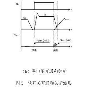 從前面的分析可以知道,開關電源損耗包括開通損耗和關斷損耗。利用軟開關技術可以減小變換器的開通損耗和關斷。軟開關的開通和關斷波形如圖5所示。