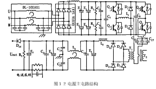 在研討的過程中,要對大功率開關(guān)直流電源的作業(yè)原理、電路的拓?fù)浣Y(jié)構(gòu)和運(yùn)行形式進(jìn)行了深入研討,并結(jié)合系統(tǒng)的技術(shù)參數(shù),確認(rèn)系統(tǒng)主電路的拓?fù)洌?guī)劃出主電路,即別離規(guī)劃出濾波、整流、DCDC變換器、軟啟動和維護(hù)操控等部分。下面就對電源主電路的規(guī)劃進(jìn)行具體說明。