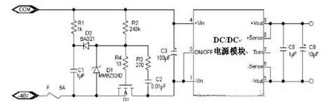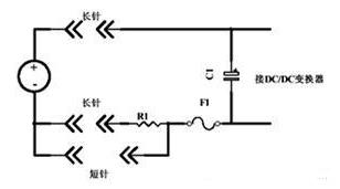 該方法缺陷是插入的速度不能控制,如插入速度過(guò)快,電容C1還沒(méi)充滿電時(shí),短針就已經(jīng)接觸,沖擊電流的限制效果就不好。也可用熱敏電阻法來(lái)限制沖擊電流,但由于DC-DC電源的輸入電壓較低,輸入電流較大,在熱敏電阻上的功耗也較大,一般不用這種方法。