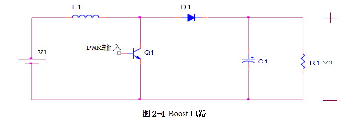 開關電源的Boost(StepUp)升壓電路先來看看Boost[10]電路原理圖,如圖2-4所示: