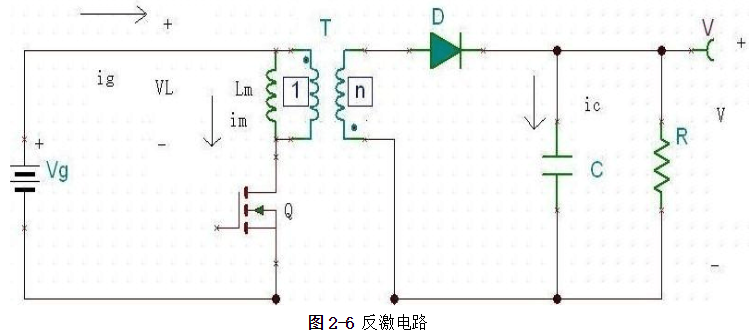 開關電源的反激(升降壓)電路我們先給出反激[11]電路的原理圖,如圖2-6所示: