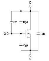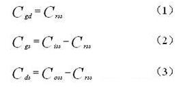 帶外接電容C2的N型MOS管極間電容等效電路MOS管的極間電容柵漏電容Cgd、柵源電容Cgs、漏源電容Cds可以由公式確定,公式中MOS管的反應(yīng)電容Crss,輸入電容Ciss和輸出電容Coss的數(shù)值在MOS管的產(chǎn)品技術(shù)手冊(cè)上可以查到。公式如下: