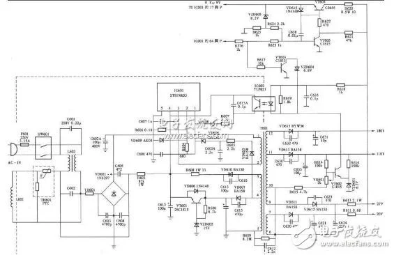 2、穩(wěn)壓回路:開關(guān)變壓器的N3繞組、D6、C13、C14等元件組成的24V電源,基準(zhǔn)電壓源TL1、光耦合器U2等元件構(gòu)成了穩(wěn)壓控制回路。