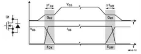 圖10.降壓轉換器中頂部FET Q1的典型開關電源波形和損耗