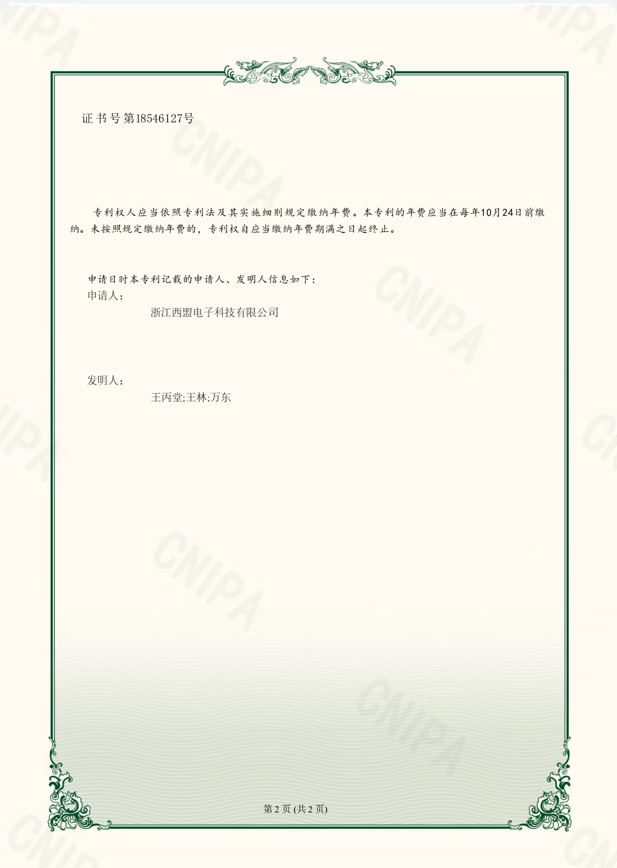 實(shí)用新型專利證書