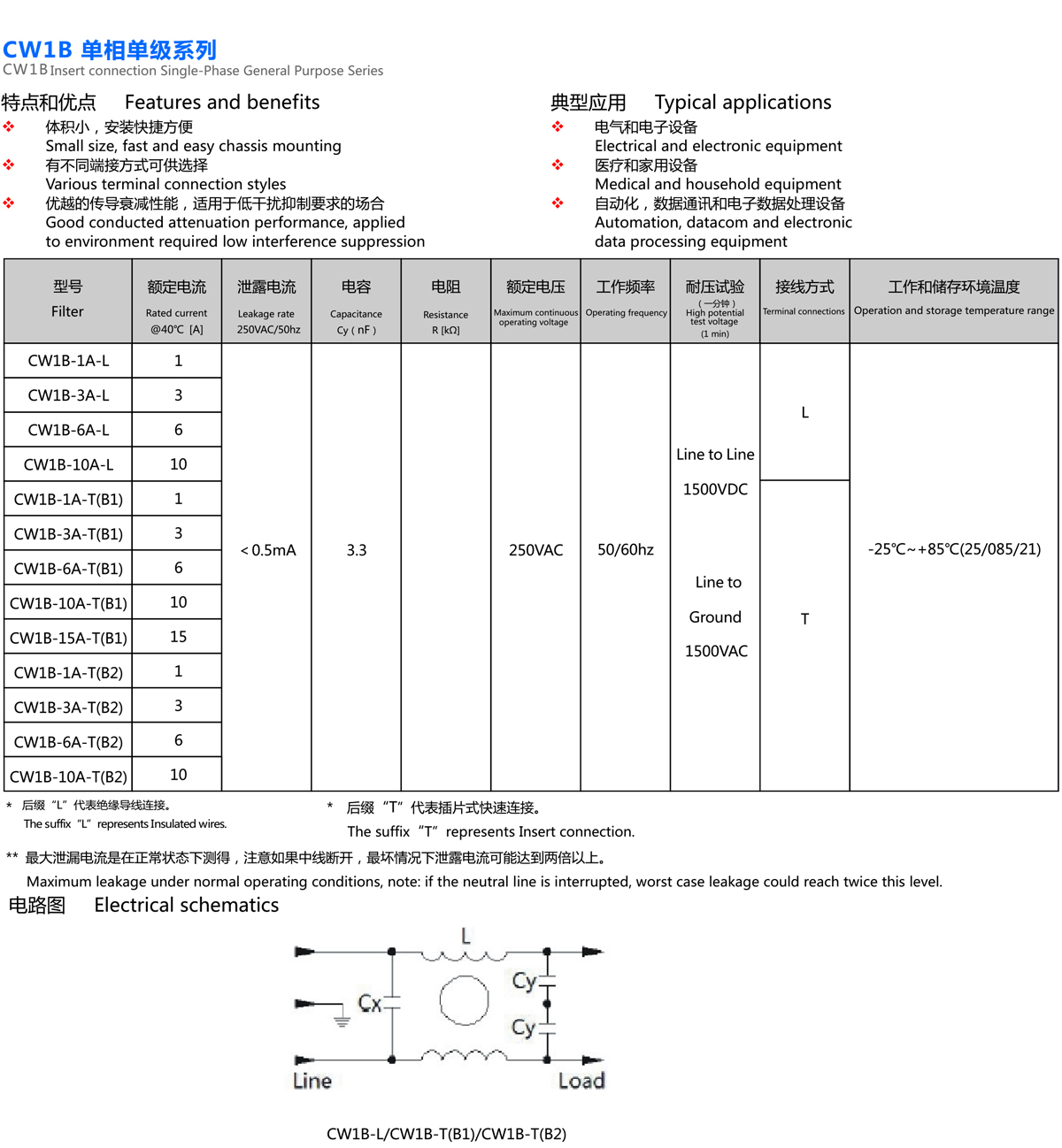 當前位置:主頁 > 產(chǎn)品展示 > 電源濾波器系列 > CB1B單相單極系列